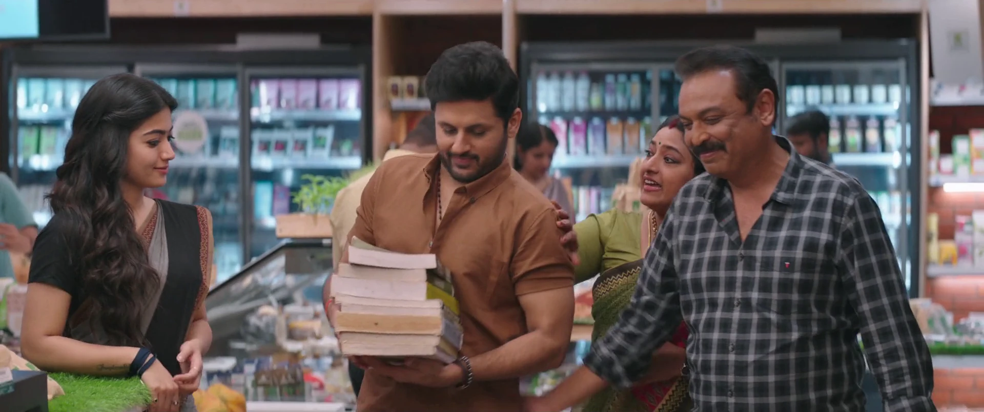 Starring: Nithiin, Anant Nag, Sampath Raj, Ajay, Vennela Kishore, Rajiv Kumar Aneja, Raghu Babu, Ayaansh Joshi, Kalyani Natarajan, Hebah Patel, Mirchi Kiran, Mime Gopi, Darbha Appaji Ambarisha, Brahmaji, Lakshmi Gopalaswamy, V.K. Naresh, Jisshu Sengupta, Rashmika Mandanna